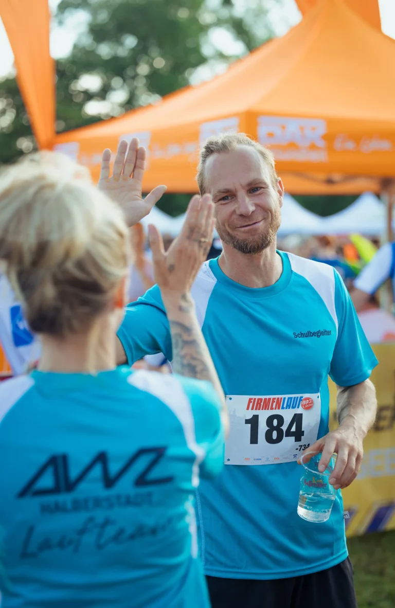 – 1x Biertischgarnitur im großen Firmenlauf Business-Zelt – überdacht, inkl. Firmenschild – für ca. 2 Teams / 8 Personen